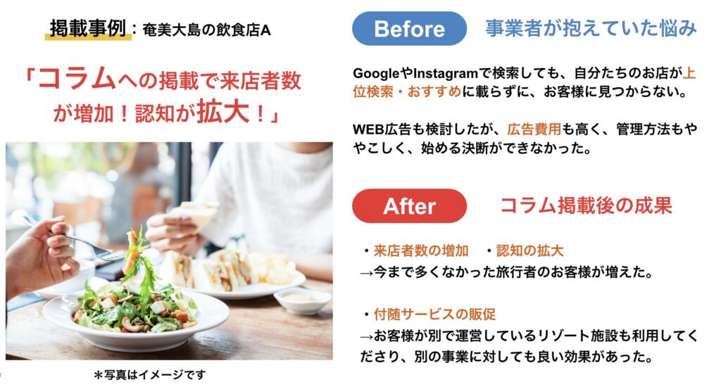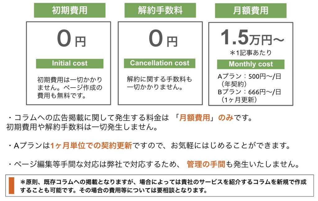 貴社のサービスをコラムに掲載することで売り上げUP・販促に繋げます。
